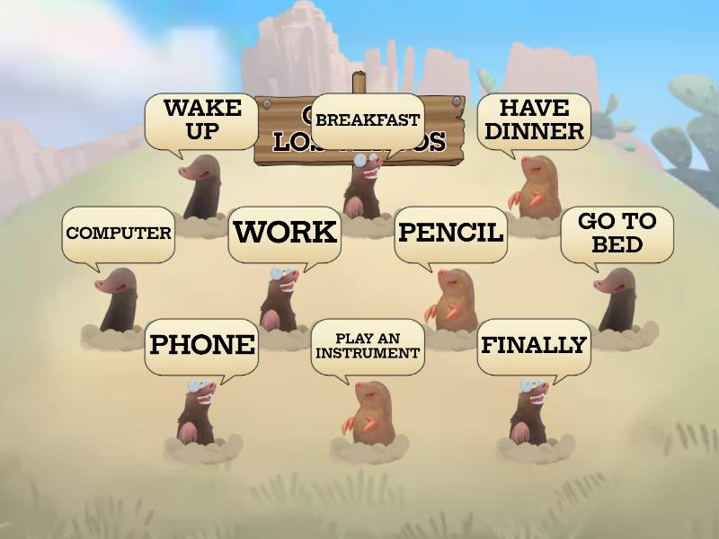 Correcto: WAKE UP , HAVE DINNER , WORK, GO TO BED, PLAY AN INSTRUMENT, STUDY, GO TO SCHOOL , GET UP , SLEEP , WATCH TV, DRIVE A CAR, Incorrecto: BREAKFAST, COMPUTER, PENCIL , PHONE, FINALLY, THEN, AFTERNOON, EVERYDAY , SUMMER, WINTER ,