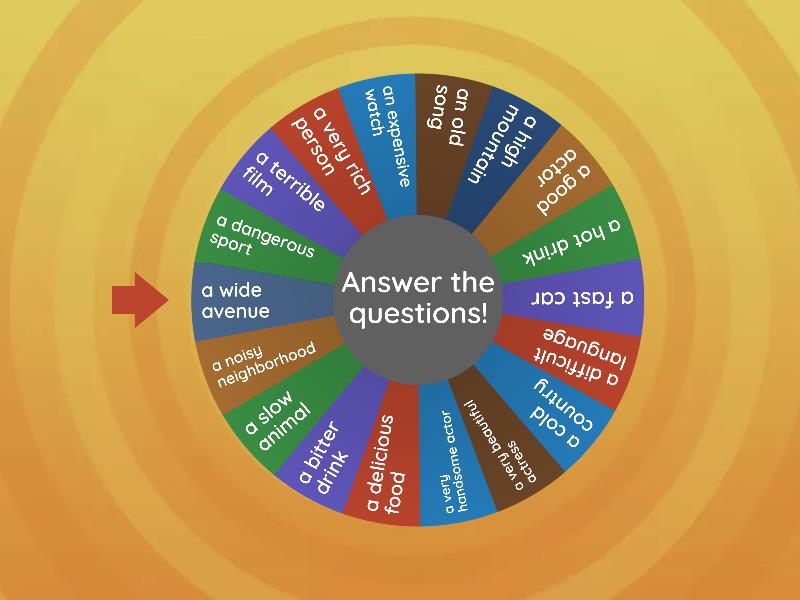 a dangerous sport, a terrible film, a very rich person, an expensive watch, an old song, a high mountain, a good actor, a hot drink, a fast car, a difficult language, a cold country, a very beautiful actress, a very handsome actor, a delicious food, a bitter drink, a slow animal, a noisy neighborhood, a wide avenue.