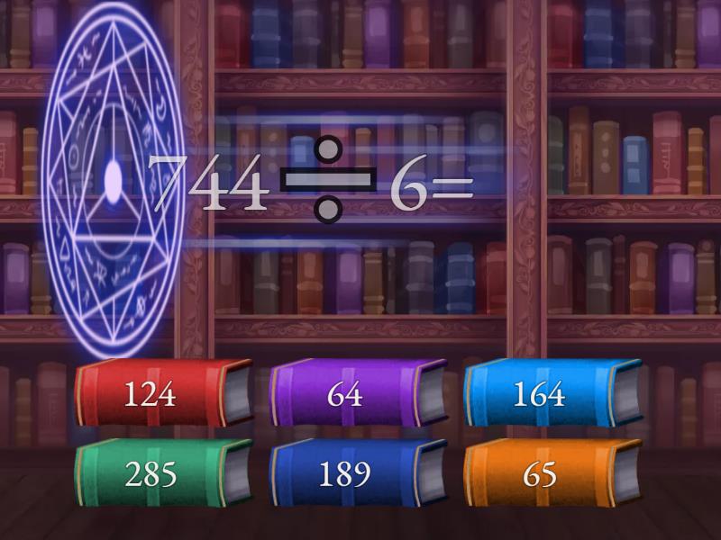 124 - 744➗6=, 285 - 570➗2=, 65 - 455➗7=, 189 - 756➗4=, 164 - 492➗3=, 64 - 320➗5=,