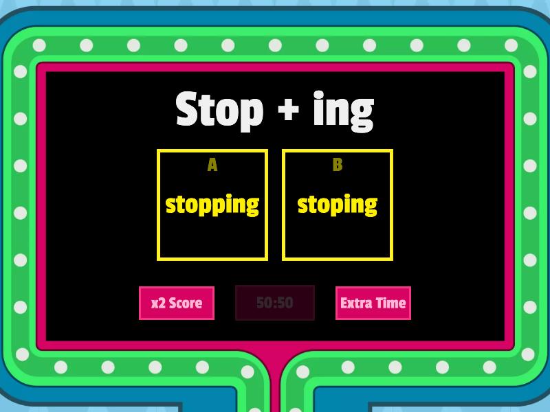 1) Stop + ing a) stopping b) stoping 2) Wed + ing a) wedding b) weding 3) stomp + ed a) stompped b) stomped 4) green +er a) greenner b) greener 5) thank + ful a) thankkful b) thankful 6) kiss + ed a) kisssed b) kissed 7) drip + ed a) dripped b) driped 8) lunch + es a) lunchches b) lunches 9) home + s a) homees b) homes 10) bad + ly a) baddly b) badly