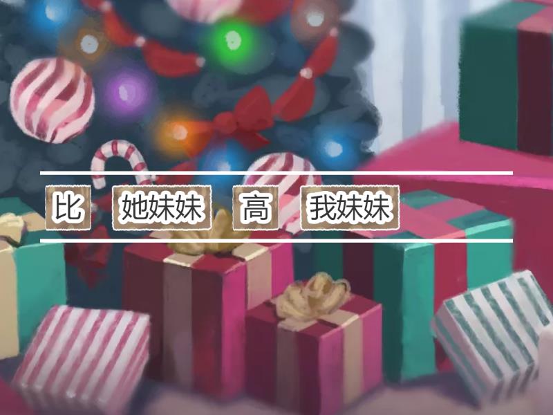 她妹妹 比 我妹妹 高, 我 觉得 这件 衣服 比 那件 漂亮, 我 觉得 学习 汉语 比 学习 英语 难, 这个 红色的 苹果 比 那个 黄色的 大, 小王 比 安娜 大 三岁,