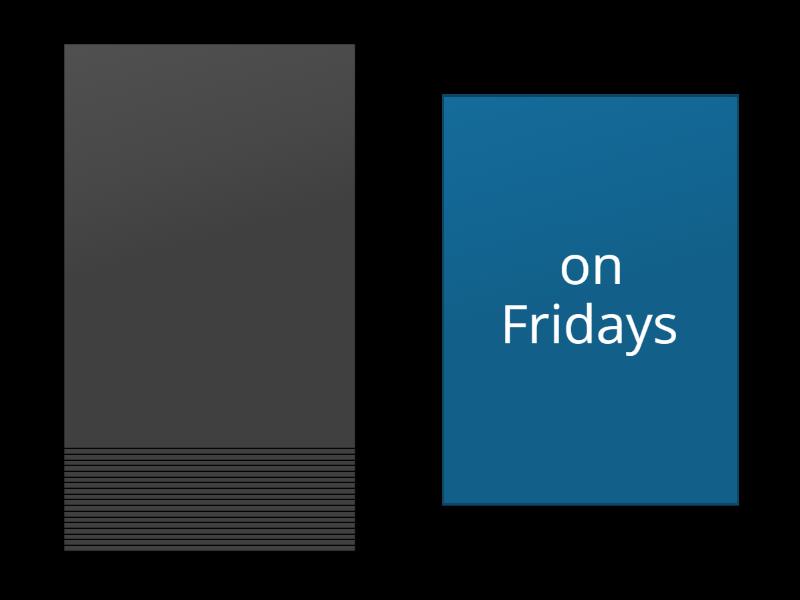 usually, yesterday, tomorrow, never, two days ago, next Saturday, every morning, last Sunday, in two days, always, last summer, next winter, in 2015, some day, twice a week, when I was 6 years old, the day after tomorrow, on Fridays, in 2030, on my last birthday.