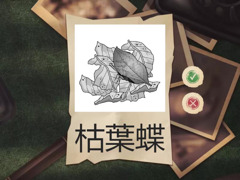 中華劍角蝗 - 體色綠色或褐色, 扁椿象 - 花紋和樹皮很像, 枯葉蝶 - 長得和枯葉很像, 柑橘尺蛾幼蟲 - 形態會模仿樹枝, 蘭花螳螂 - 體色和蘭花相似,