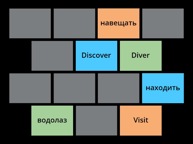 Visit - навещать, Diver - водолаз, Discover - находить, Scream - кричать, Rock - камень, Cave - пещера, Footprint - след,