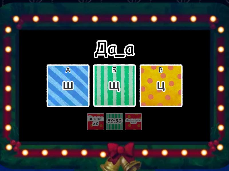 1) Да_а a) ш b) щ c) ц 2) гу_а a) ш b) щ c) ц 3) _уба a) ж b) ш c) щ 4) _ук a) ш b) щ c) ж 5) ли_ний a) ж b) ш c) щ 6) ви_ня a) ж b) ш c) щ