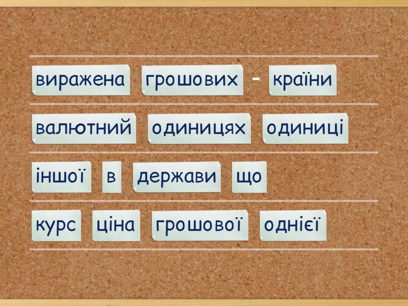 валютний курс - ціна грошової одиниці однієї держави що виражена в грошових одиницях іншої країни, котирування - визначення курсу іноземної валюти до національної, пряме котирування - одиниця іноземної валюти виражена в національній, непряме котирування - одиниця національної валюти виражена в іноземній,