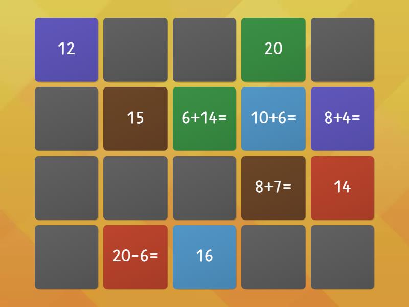 6+14= - 20, 8+4= - 12, 20-6= - 14, 10+6= - 16, 8+7= - 15, 3+7= - 10, 1+6= - 7, 9+9= - 18, 8+9= - 17, 7+6= - 13,