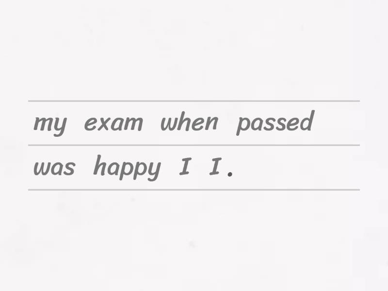 I was happy when I passed my exam., We were at the beach last weekend., She cleaned her room and organized her clothes., He walked to the park with friends., He talked to his mom on the phone., We listened to music and danced together., They finished work and watched a movie., We visited a historical museum and learned a lot of new things.,