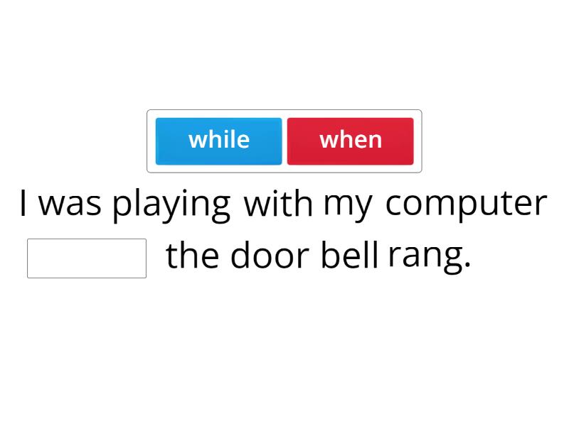 I was playing with my computer ____ the door bell rang. ____I was reading Harry Potter, my mum was watching Korean drama. Steven was crying ____ Mr. Li stepped into the classroom Jennifer was playing table tennis ____ Tony and I were playing basketball. Sunny was sleeping ____ a burglar broke into his room. ____ I was teaching, the students were chatting happily behind my back. ____ I was walking on the road, a bottle of acid fell from the sky.