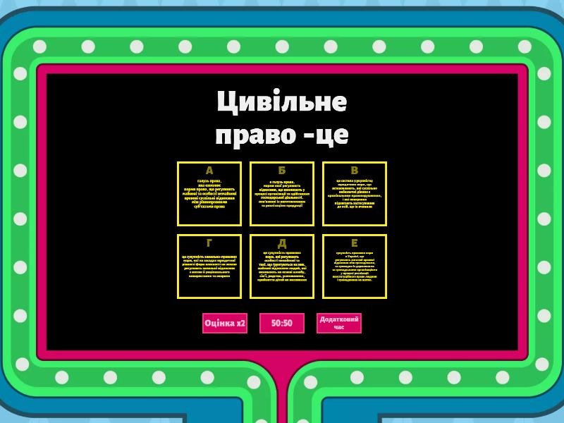 1) Цивільне право -це a) галузь права, яка охоплює норми права, що регулюють майнові та особисті немайнові правові суспільні відносини між рівноправними суб'єктами права b) е галузь права, норми якої регулюють відносини, що виникають у процесі організації та здійснення господарської діяльності, пов'язаної із виготовленням та реалізацією продукції c) це система (сукупність) юридичних норм, що встановлюють, які суспільно небезпечні діяння є кримінальним правопорушенням, і які покарання підлягають застосуванню до осіб, що їх вчинили d) це сукупність земельно-правових норм, які на засадах юридичної рівності форм власності на землю регулюють земельні відносини з метою її раціонального використання та охорони e) це сукупність правових норм, які регулюють особисті немайнові та такі, що ґрунтуються на них, майнові відносини людей, які виникають на основі шлюбу, сім’ї, родства, усиновлення, прийняття дітей на виховання f) сукупність правових норм в Україні, що регулюють житлові правові відносини між громадянами, та громадян із державними та громадськими організаціями у процесі реалізації конституційного права людини і громадянина на житло. 2) Повна провоздатність наступає з a) 16 років b) 14 років c) 18 років d) 17 років e) з моменту одруження f) 15 років