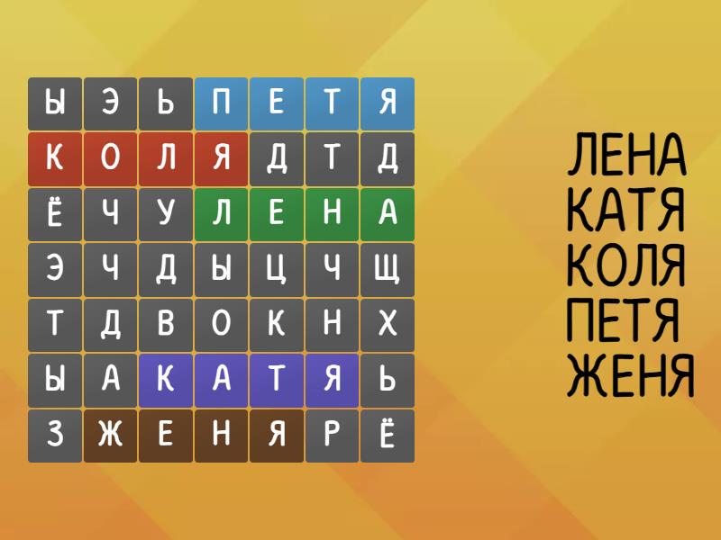 ЛЕНА, КАТЯ, КОЛЯ, ПЕТЯ, ЖЕНЯ,