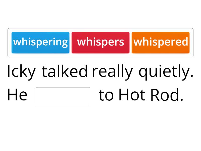 Icky talked really quietly. He ____ to Hot Rod. Mrs. Ulsh is having fun ____ gifts to her friends. Mrs. Morrey hates eating rice. She ____ everytime it is served at dinner. Mrs. Rupper ____ the best book report ever! Mrs. Taylor is ____ a fascinating video. "Please stop ____. I can't hear you." "My new books were just ____! I can't wait to read them!" Daniel ____ when his dad took a bite of cake and called it dad tax. "Go away! I'm ____ in my diary." The boys ____ a new basketball move.