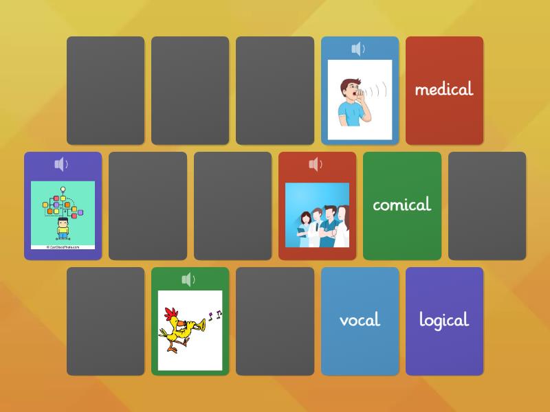 comical, logical, medical, vocal, bicycle, icicle, uncle, obstacle,