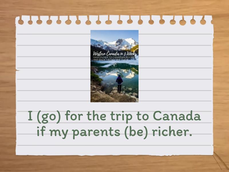 If your mum (see) your room, she (not be) happy. - saw.... wouldn´t be, If you (train) your dog, it (not run) away. - trained.... wouldn´t run, They (visit) me if they (be) in our town. - would visit..... were, You (have) more time if you (not play) computer games. - would have.... didn´t play, I (not be) happy at school if teachers (not like) me. - wouldn´t be......didn´t like, I (stay) at home if I (be) ill. - would stay....were, If I (have) enough money, I (buy) a new house. - had.... would buy, If I (win) in the lottery, I (travel) a lot. - won... would travel, If I (be) you, I (not go) there. - were....wouldn´t go, If I (learn) more, I (have) better marks. - learnt.... would have, If I (have) more free time, I (go) for holiday. - had.... would go, If I (know) it, I (solve) the problem. - knew.... would solve, If you (not watch) TV too much, you (be) heathier. - didn´t watch.... would be, If I (be) a president, I (be) famous and rich. - were.... would be, If my sister (not be) so silly, I (talk) to her more. - weren´t .... would talk, I (go) for the trip to Canada if my parents (be) richer. - would go... were, If I (have) time, I (clean) the house. - had....would clean, If I (be) hungry, I (eat). - were... would eat, If I (eat) too much, I (be) sick. - ate... would be, If I (study) more, I (speak) better English. - studied... would speak,