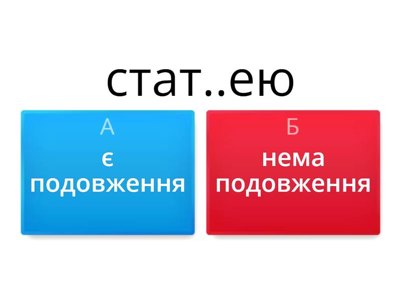 1) стат..ею a) є подовження b) нема подовження 2) Іл..єнко a) є подовження b) нема подовження 3) відкрит..ів a) є подовження b) нема подовження 4) облич..я a) є подовження b) нема подовження 5) доручен..ь a) є подовження b) нема подовження 6) узбіч..ями a) є подовження b) нема подовження 7) індичен..я a) є подовження b) нема подовження 8) виведен..я a) є подовження b) нема подовження 9) л..итимеш a) є подовження b) нема подовження 10) ласкавіст..ю a) є подовження b) нема подовження 11) лют..ю a) є подовження b) нема подовження 12) сіл..ю a) є подовження b) нема подовження 13) піч..ю a) є подовження b) нема подовження 14) річ..ю a) є подовження b) нема подовження 15) ясніст..ю a) є подовження b) нема подовження 16) почут..ів a) є подовження b) нема подовження