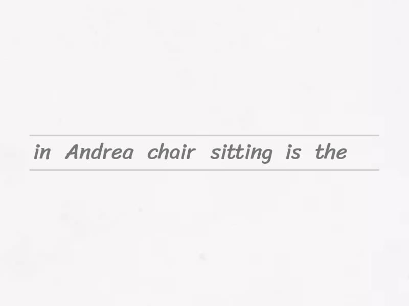 Andrea is sitting in the chair, we aren't visiting the museum in the morning, is the monkey swinging?, Camilo isn't making a pizza, are they listening to music?, the turtle is swimming in the ocean, are the tigers playing?, They are eating lunch right now, am I driving too fast?, is the rabbit eating?,