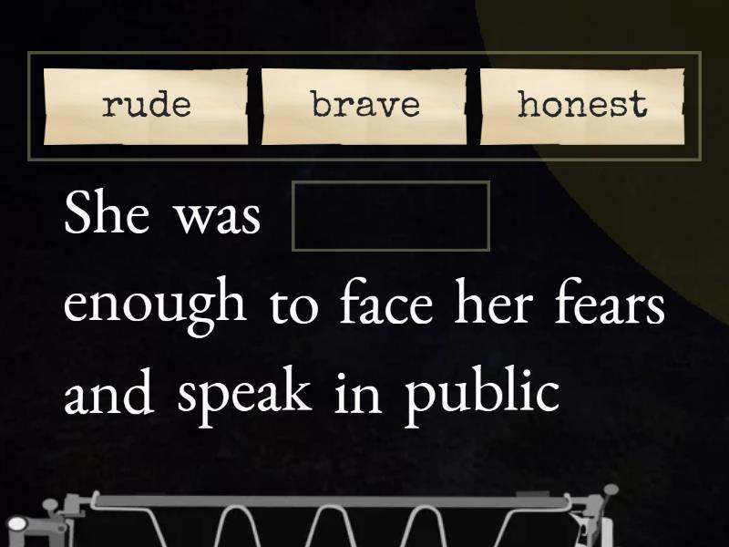 She was ____ enough to face her fears and speak in public You need to be ____ while waiting for the doctor to call your name. The teacher praised him for being ____ about what happened. She's ____ but friendly once you get to know her. It's ____ to interrupt someone while they're speaking. John is ____ and loves to meet new people. She lost weight and now has a ____ figure. Her ____ hair looked especially beautiful tonight. She keeps his hair ____ by using a flat iron every morning. She has ____ on her nose and cheeks. Her grandmother has ____ on her face from years of smiling. Despite the rain, she remained ____ throughout the picnic. Nobody liked the ____ girl who never shared her toys. She's always ____ and likes to control everything. The ____ driver honked his horn at the red light. His ____ stunts on the skateboard impressed everyone at the park. John is ____ and always finishes his work on time. He's so ____, he gave away his favorite toy to a child who didn't have any. The ____ girl spoke non-stop during the entire car ride. I am ____, so I need to exercise more. She may be ____, but she's still beautiful. My boss is very ____, he never gets angry. He twirls his ____ when he's thinking. Tom is ____ and doesn't talk much in class. Some men look better with a ____, but others don't. Sarah is ____ in her abilities and always does well on tests. If you want to ____ your vocabulary, you should read more books. It's not nice to ____ others, it can hurt their feelings.