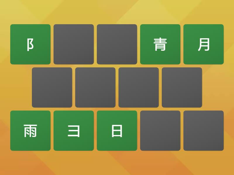 日 - 青, 雨 - 彐, 阝 - 月, 舌 - 刂, 冫 - 令, 执 - 灬, 一 - 卜,