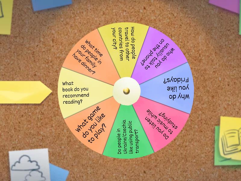 1) What time do people in your family have dinner? 2) How do people travel to other countries from your city? 3) Who do you usually talk to on the phone? 4) Why do you like Fridays? 5) Do you listen to music while studying? 6) Do people in Ukraine/Czechia like using public transport? 7) What game do you like to play? 8) What book do you recommend reading?