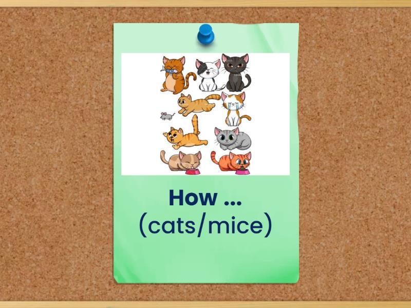 How ... - 4, How ... - 3, How ... (flowers) - 5, How ... - 4, How ... (trees) - 8, How ... (clouds) - 7, How ... (cats/mice) - 9 cats, 1 mouse, How ... - 9, How ... - 1, How ... - 6, How ... (teachers) - 1, How ... (children) - 7,