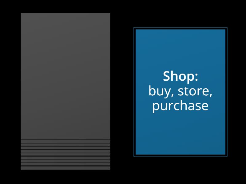 : Shop: buy, store, purchase, Cashier: money, pay, till, Basket: carry, items, handle, Trolley: push, supermarket, wheels, Price: cost, money, tag, Discount: sale, reduce, bargain, Receipt: paper, proof, purchase, Fitting room: try, clothes, mirror, Wallet: money, pocket, cash, Queue: wait, line, behind, Sale: cheap, discount, price, Size: fit, big, small, Mall: shops, centre, large, Brand: make, logo, famous, Gift: present, birthday, wrap, Fashion: style, clothes, trend, Clothes: wear, dress, outfit, Checkout: pay, till, buy, Dress: wear, woman, skirt, Shelf: display, product, store, Bargain: cheap, deal, discount, Bag: carry, shop, cargo, Market: stalls, open, fresh, Change: money, coins, difference,