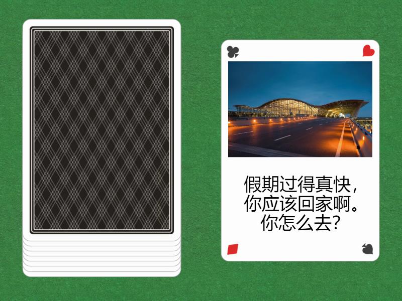你打算去中国旅行, 坐飞机去中国最方便, 你要做什么?, 去中国的一天终于到了! 你要去哪儿?做什么?, 你终于到了北京大兴机场! 你做什么?, 你的宾馆在哪儿? 附近有什么地方?, 你最想参观哪些景点? 到那些地方要怎么走?, 你在北京住了几天, 但还要去看看上海。 你要怎么去?, 你在上海的宾馆在哪儿? 从机场到宾馆怎么去?, 宾馆附近有什么地方?, 假期过得真快, 你应该回家啊。 你怎么去?.