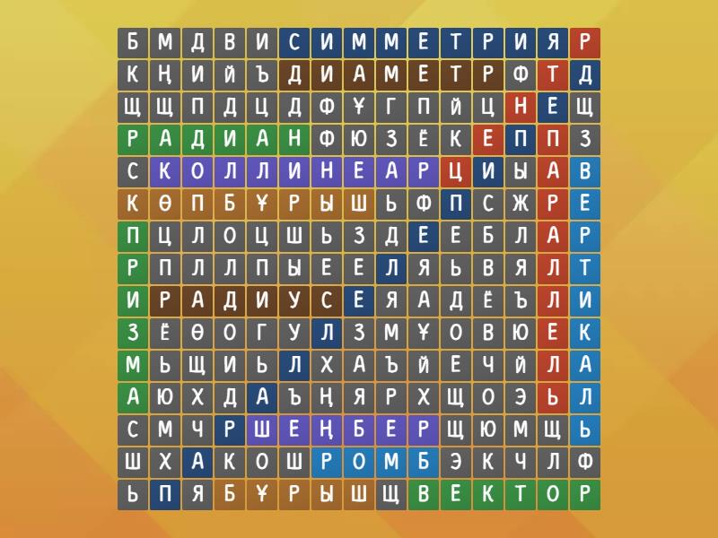 вектор, коллинеар, параллель, вертикаль, радиус, параллелепипед, бұрыш, призма, шеңбер, центр, ромб, диаметр, симметрия, көпбұрыш, радиан,