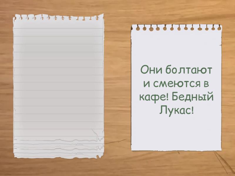 Лукас дома сегодня., Сегодня он сидит в своей комнате., Он не слушает музыку., Он не играет в компьютерные игры., Он сидит в интернете для своего проекта по ествественным наукам., Родители Лукаса смотрят фильм по телевизору внизу., Его друзья не делают домашнюю., Они болтают и смеются в кафе! Бедный Лукас!.