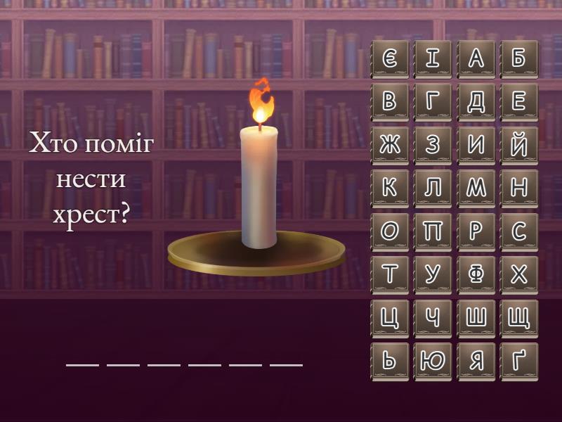 Симеон - Хто поміг нести хрест?, Марію - кого зустрів Ісус?, Вероніка - Хто отер лик Христа?,
