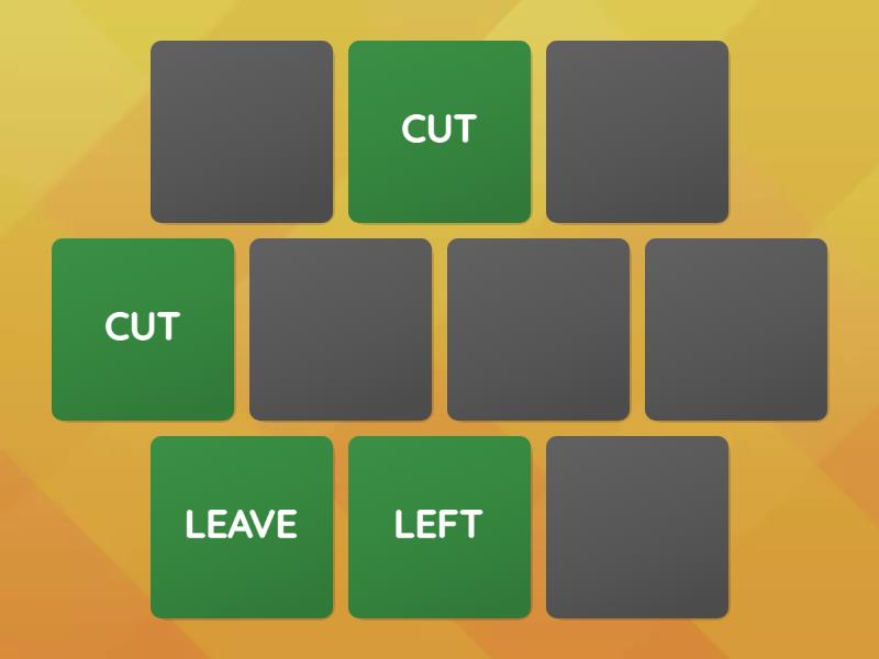 CUT - CUT, LEAVE - LEFT, DO - DID, HIDE - HID, CATCH - CAUGHT,
