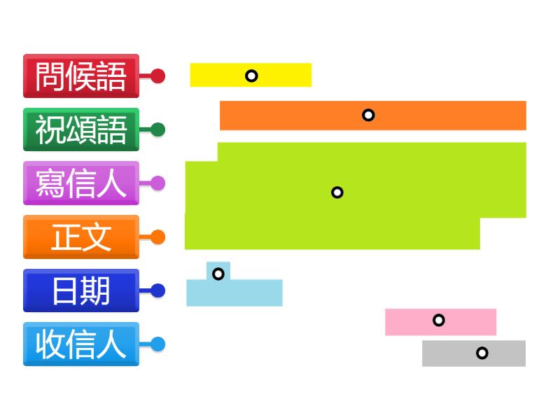 收信人, 問候語, 正文, 祝頌語, 寫信人, 日期.