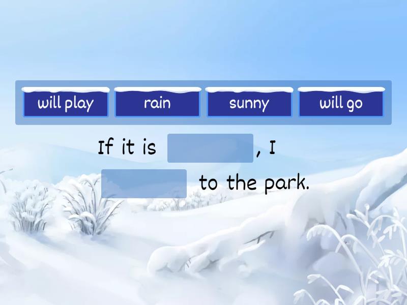 If it is ____, I ____ to the park. If I ____ enough money, I____ some new shoes. If the plane ____ delayed, she ____ late. If the weather ____ fine tomorrow, we ____ cycling. Your sister ____ mad if you ____ her things. If I ____ hard, I ____. If you ____ her to your party, she ____ If my sister ____ English, she ____ to England If I ____ the exams at school, my parents ____ really dissapoited If Bob ____ how to play the guitar, he ____ in the band