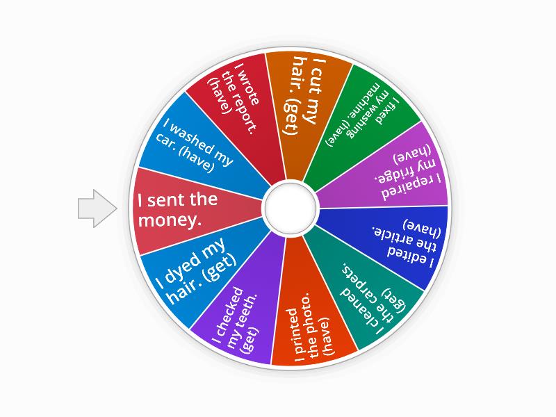 1) I washed my car. (have) 2) I wrote the report. (have) 3) I cut my hair. (get) 4) I fixed my washing machine. (have) 5) I repaired my fridge. (have) 6) I edited the article. (have) 7) I cleaned the carpets. (get) 8) I printed the photo. (have) 9) I checked my teeth. (get) 10) I dyed my hair. (get) 11) I sent the money.