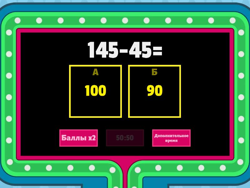 1) 145-45= a) 100 b) 90 2) 200-150= a) 50 b) 25 c) 100 3) 450+50= a) 500 b) 420 4) 220-50= a) 200 b) 170 c) 100 5) 100+100= a) 200 b) 205 c) 150