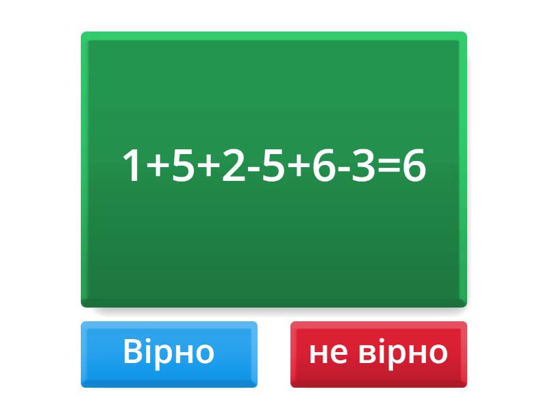 Вірно: 5+4-3-6+2=2, 1+5+2-5+6-3=6, 1+2+5-6+2+5-4=5, не вірно: 4+5-3-6+2-1=5, 6-1+4-5-3+5=5, 6-5+2-3+6-1=4,