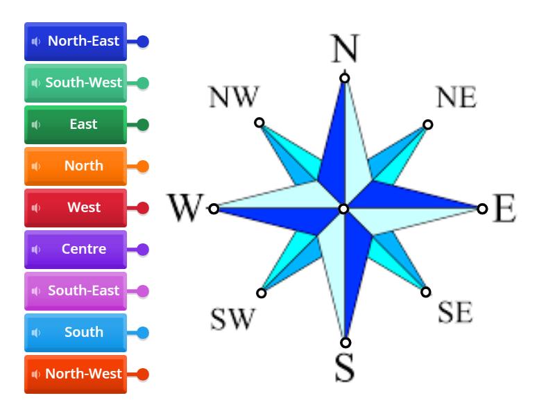 South, West, North, East, South-East, North-East, South-West, North-West, Centre.