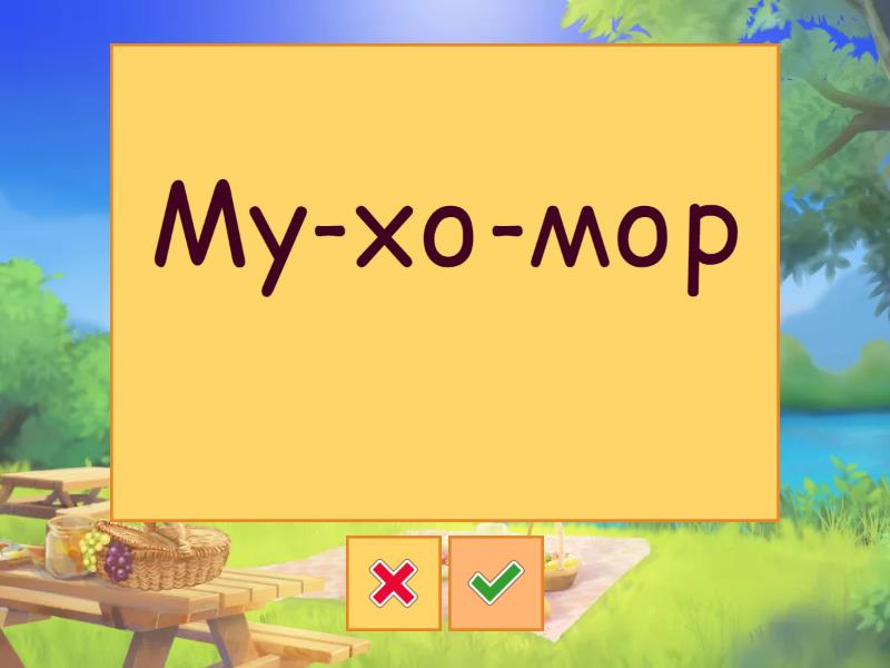 Сыр, О-са, Му-хо-мор, Му-ха, Сом, У-сы, Шар, Ша-ры, О-сы, Со-мы,