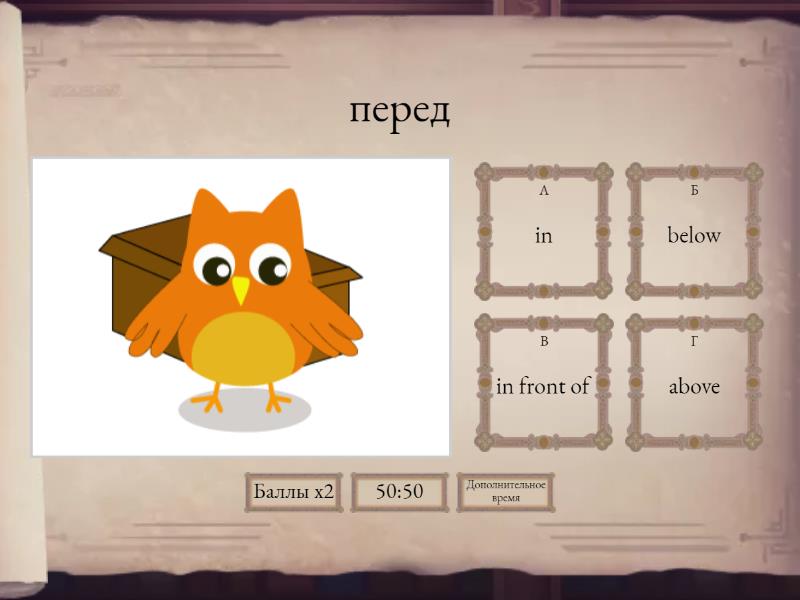 1) перед a) in b) below c) in front of d) above 2) в a) on b) in c) in front of d) above 3) позади a) below b) behind c) next to d) under 4) на a) under b) on the right c) near d) on 5) под a) in b) under c) on the left d) in front of 6) рядом (очень) a) opposite b) next to c) on d) behind 7) над a) above b) opposite c) under d) on the left 8) внизу a) on the left b) opposite c) under d) below 9) рядом (но еще нужно пройти немного) a) behind b) on the right c) above d) near 10) слева a) under b) below c) near d) on the left 11) справа a) under b) on the left c) on the right d) behind 12) напротив a) opposite b) near c) next to d) below