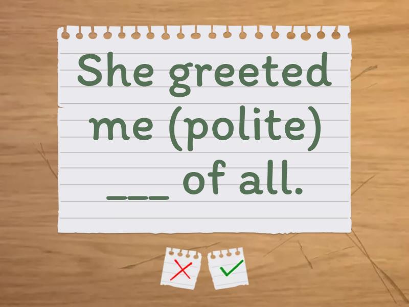 I speak English (fluent) ___ now than last year. - more fluently, She greeted me (polite) ___ of all. - most politely, She smiled (happy) ___ than before. - more happily, This girl dances (graceful) ___ of all. - most gracefully, Could you write (clear) ___ ? - more clearly, Planes can fly (high) ___ than birds. - higher, He had an accident last year. Now, he drives (careful) ___ than before. - more carefully, Jim can run (fast) ___ than John. - faster, Our team played (bad) ___ of all. - worst, He worked (hard) ___ than ever before. - harder,