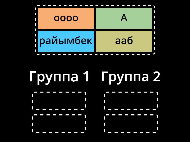 Группа 1: райымбек, ааб, Группа 2: А, оооо,