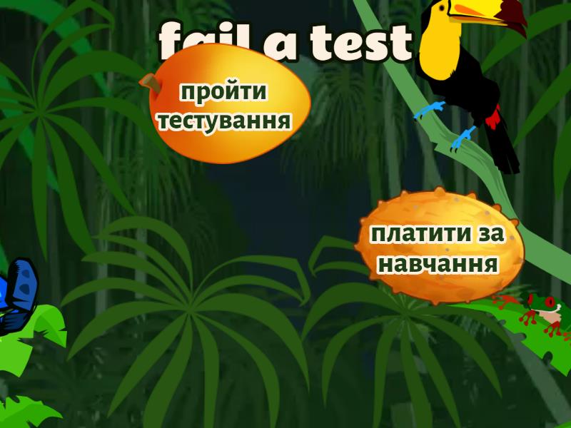 1) revise for a test a) Сдати тест b) Повторити перед тест c) Перездати тест 2) do well in a test a) добре скласти тест b) Сдати іспит c) Допогти сдати 3) take a test a) пройти тестування b) скласти тест c) Брати 4) pass a test a) скласти тест b) добре скласти тест c) початкова школа 5) fail a test a) платити за навчання b) пройти тестування c) не скласти тест 6) boarding school a) початкова школа b) школа-інтернат, пансіоні c) середня школа 7) primary school a) початкова школа b) школа-інтернат, пансіоні c) скласти тест 8) secondary school a) початкова школа b) школа-інтернат, пансіоні c) середня школа 9) get low/high grades a) отримати низькі/високі оцінки b) платити за навчання c) державна школа 10) attend a school a) вивчати предмет b) відвідувати школу c) отримати кваліфікацію 11) get qualifications a) отримати кваліфікацію b) вивчати предмет c) відвідувати школу 12) persuade a) говорити з кимось b) переконувати c) говорити тихо