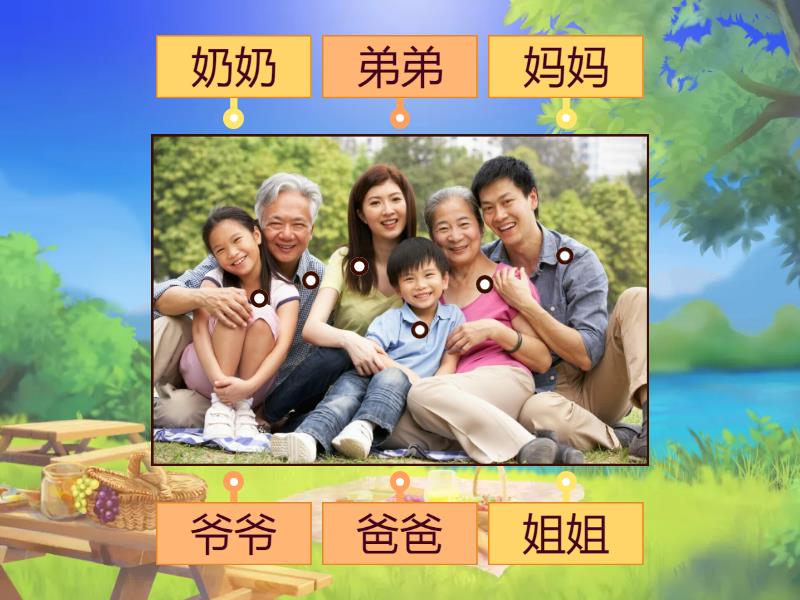 妈妈, 爸爸, 奶奶, 爷爷, 姐姐, 弟弟.