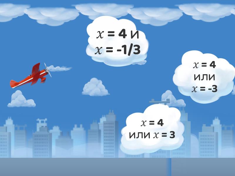 1) (𝑥 –5)(3𝑥+4)=0 a) 𝑥 – 5 = 0 или 3𝑥 + 4 = 0 b) 𝑥 – 5 = 0 c) 3𝑥 + 4 =0 d) 𝑥 – 5 = 0 и 3𝑥 + 4 = 0 2) (4 – 𝑥)(2𝑥 + 6) = 0; a) 𝑥 = 4 или 𝑥 = -3 b) 𝑥 = 4 или 𝑥 = 3 c) 𝑥 = 4 или 𝑥 = -1/3 d) 𝑥 = 4 и 𝑥 = -3 e) 𝑥 = 4 и 𝑥 = 3 f) 𝑥 = 4 и 𝑥 = -1/3
