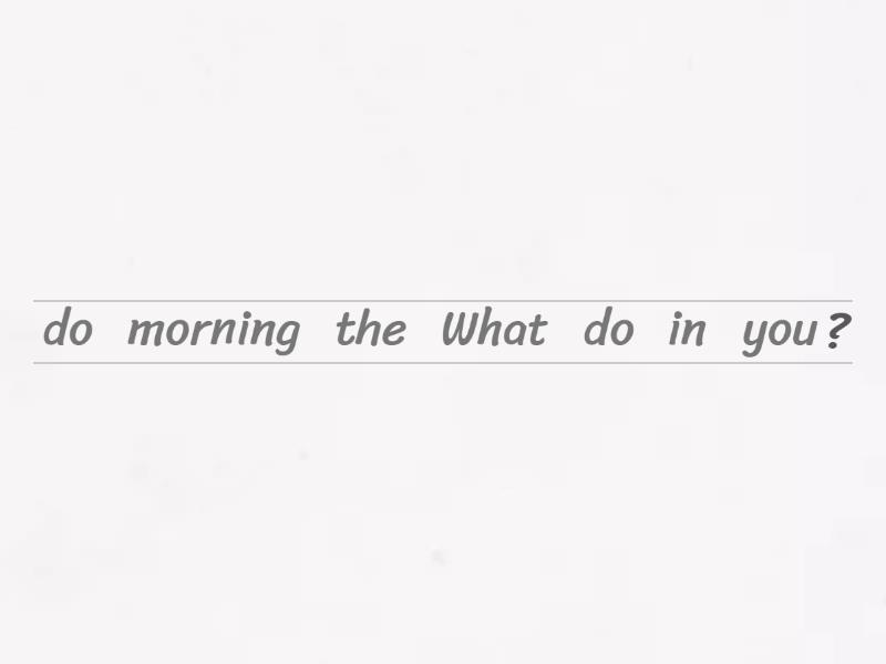 What do you do in the morning?, What do you do in the evening?, When do you take shower?, When do you walk your dog?, What do you usually have for breakfast?, Wehn do you usually get up?, What do yo have for lunch?, Where do you have dinner?,