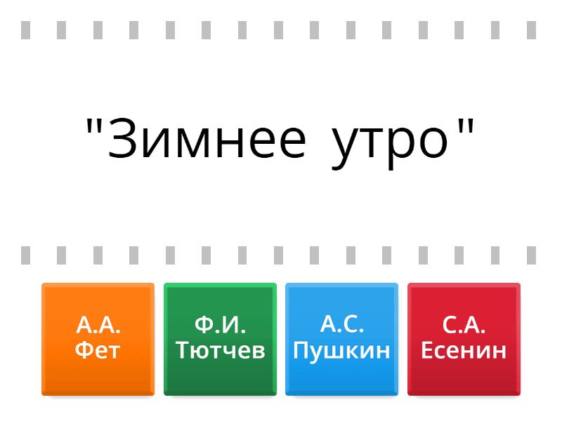 А.С. Пушкин - "Зимнее утро", С.А. Есенин - "Берёза", А.А. Фет - "Ещё весны душистой", Ф.И. Тютчев - "Весенняя гроза",