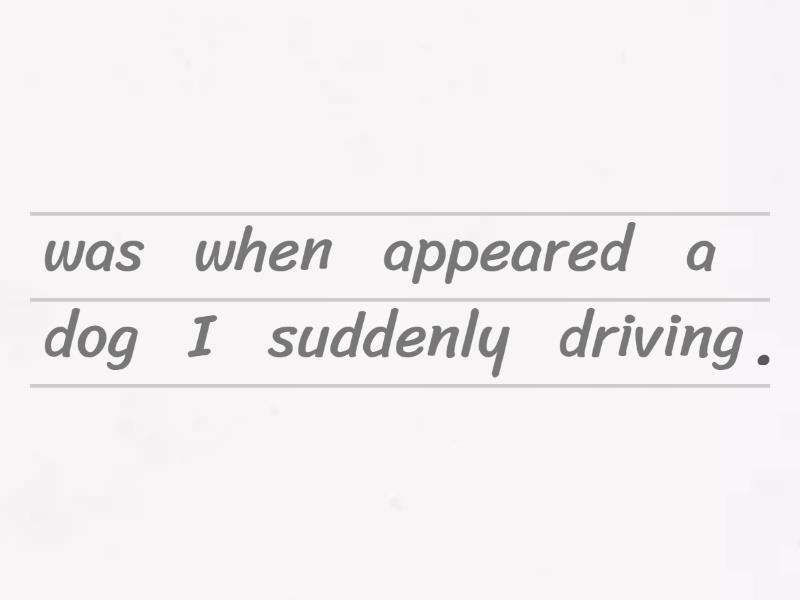 I was driving when a dog appeared suddenly., Micky was playing basketball while Tom was taking a rest., When Miss Cheung was teaching, Katie came in., The robber was escaping while the police were chasing him., Tim dropped the iPhone when he was running., Jasmine and Osaze were playing while Miss Cheung was talking to the class.,