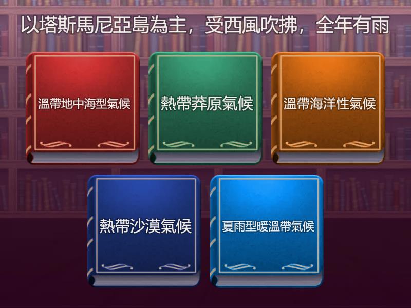 1) 大分水嶺東側,迎東南信風,加上沿海暖流,降水量較多 a) 夏雨型暖溫帶氣候 b) 熱帶沙漠氣候 c) 溫帶地中海型氣候 d) 溫帶海洋性氣候 e) 熱帶莽原氣候 2) 沿海平原是人口聚集的精華區 a) 夏雨型暖溫帶氣候 b) 熱帶沙漠氣候 c) 溫帶地中海型氣候 d) 溫帶海洋性氣候 e) 熱帶莽原氣候 3) 大分水嶺西側的背風側,受副熱帶高壓籠罩,乾燥少雨 a) 夏雨型暖溫帶氣候 b) 熱帶沙漠氣候 c) 溫帶地中海型氣候 d) 溫帶海洋性氣候 e) 熱帶莽原氣候 4) 西南部冬迎西風,呈現夏乾冬雨的降水類型 a) 夏雨型暖溫帶氣候 b) 熱帶沙漠氣候 c) 溫帶地中海型氣候 d) 溫帶海洋性氣候 e) 熱帶莽原氣候 5) 以塔斯馬尼亞島為主,受西風吹拂,全年有雨 a) 夏雨型暖溫帶氣候 b) 熱帶沙漠氣候 c) 溫帶地中海型氣候 d) 溫帶海洋性氣候 e) 熱帶莽原氣候 6) 位於緯度較低的北部,夏雨冬乾的氣候特徵 a) 夏雨型暖溫帶氣候 b) 熱帶沙漠氣候 c) 溫帶地中海型氣候 d) 溫帶海洋性氣候 e) 熱帶莽原氣候
