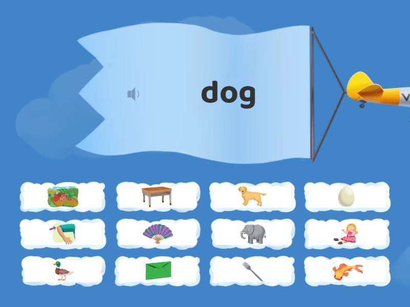 dog, elephant, farm, elbow, desk, fork, egg, fan, doll, fish, duck, envelope,