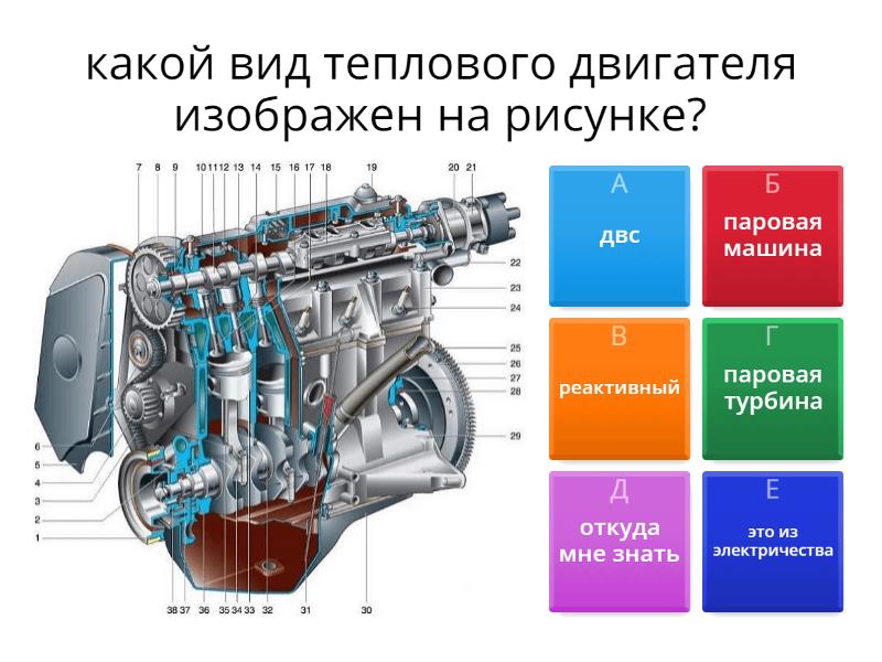 1) какой вид теплового двигателя изображен на рисунке? a) двс b) паровая машина c) реактивный d) паровая турбина e) откуда мне знать f) это из электричества 2) на каком из рисунков изображен С.Карно? a) b) c) d) e) f) 3) тепловая машина, нарушающая второй закон термодинамики не добровольно, а по принуждению a) b) c) d) e) f)