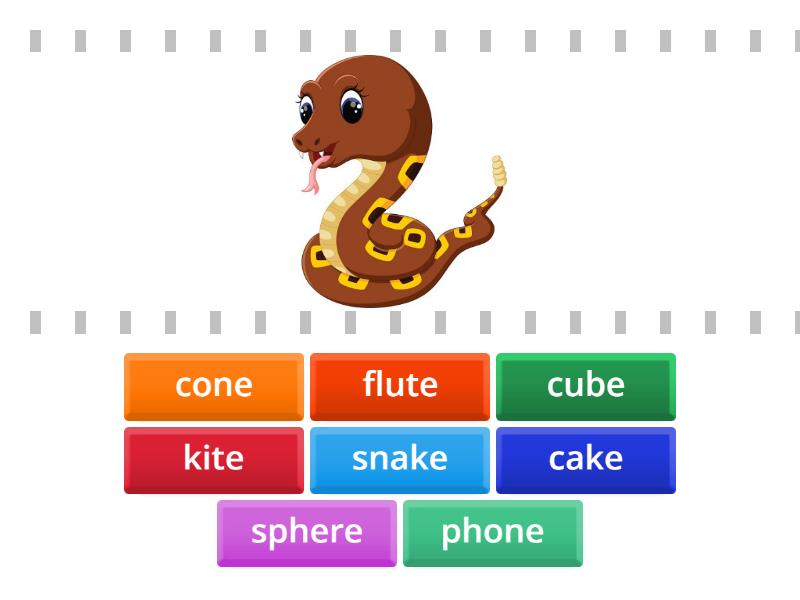 snake, kite, cone, cube, sphere, cake, phone, flute,